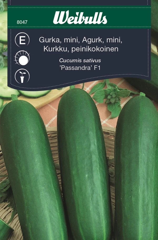 Mini agurk til drivhus. Udvikles som almindelig slange-agurk, men giver mange, små korte frugter. Perfekt til den lille husholdning. God frisk på smørrebrød/smørbrød eller i salater.