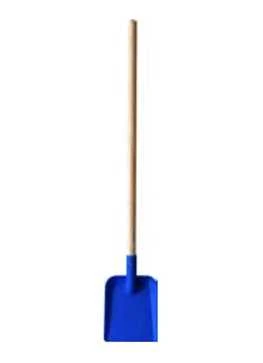Skovl til børn i blå plast og træ.